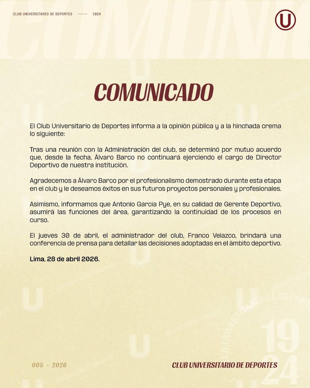Martes 21 abril: Comunicado