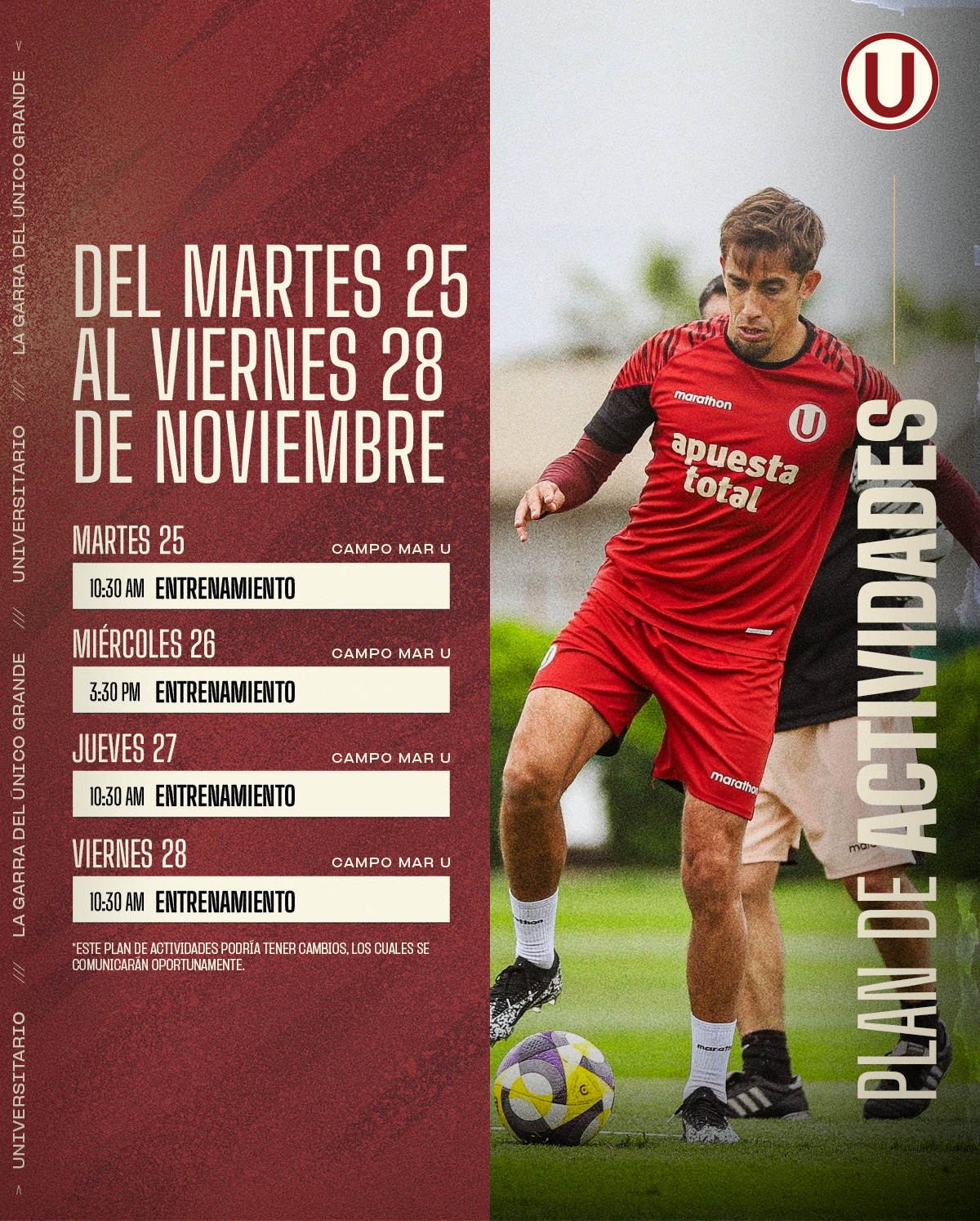 Plan de actividades del primer equipo de Universitario